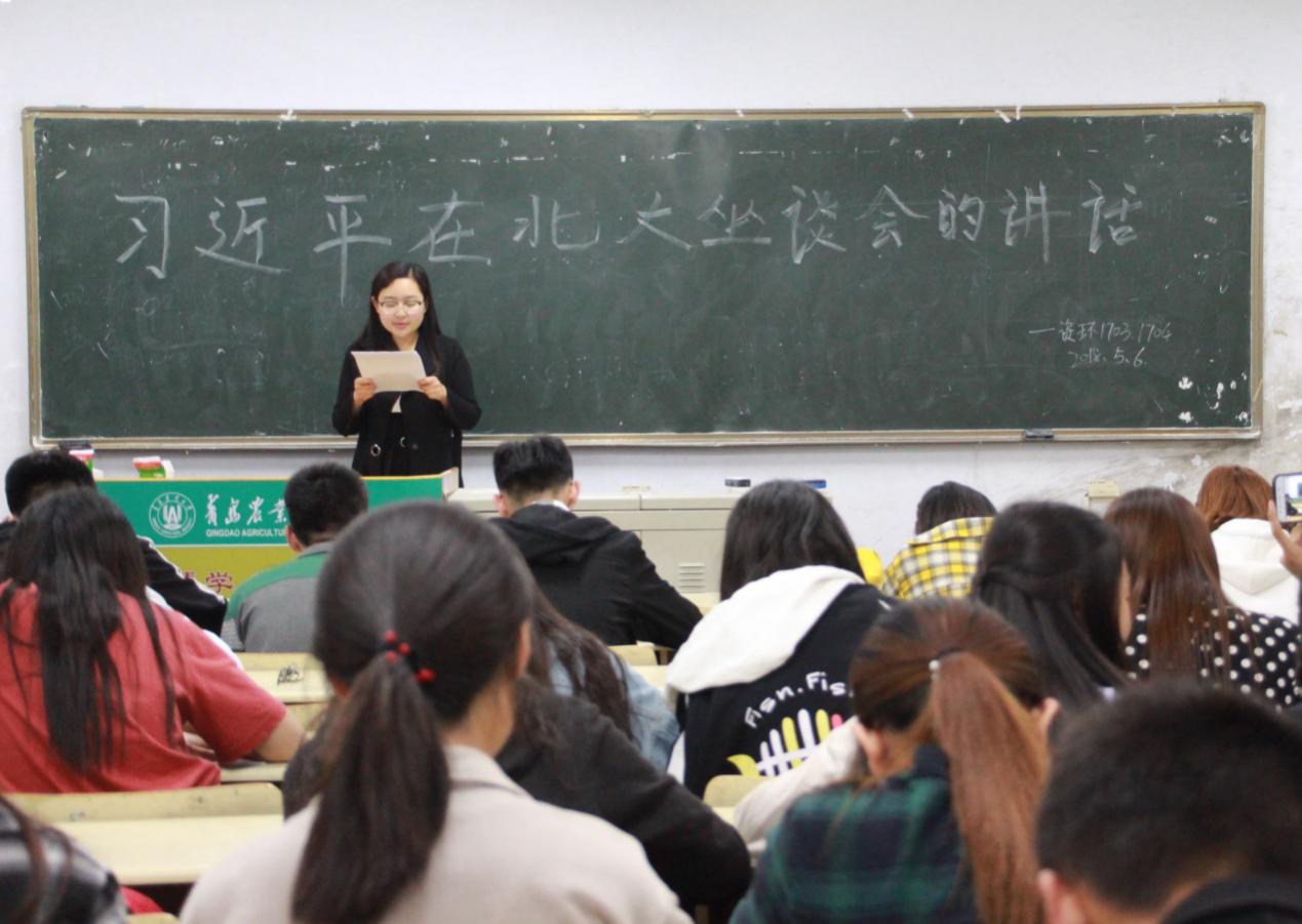 5月2日上午,在“五四”青年节和北京大学建校120周年校庆日来临之际,习近平前往北京大学考察。习近平总书记在与北大师生座谈时发表的重要讲话在青农大师生中引起了强烈反响,青岛农业大学资源与环境学院积极响应总书记号召,组织学生学习习近平总书记在北大师生座谈会上的讲话。