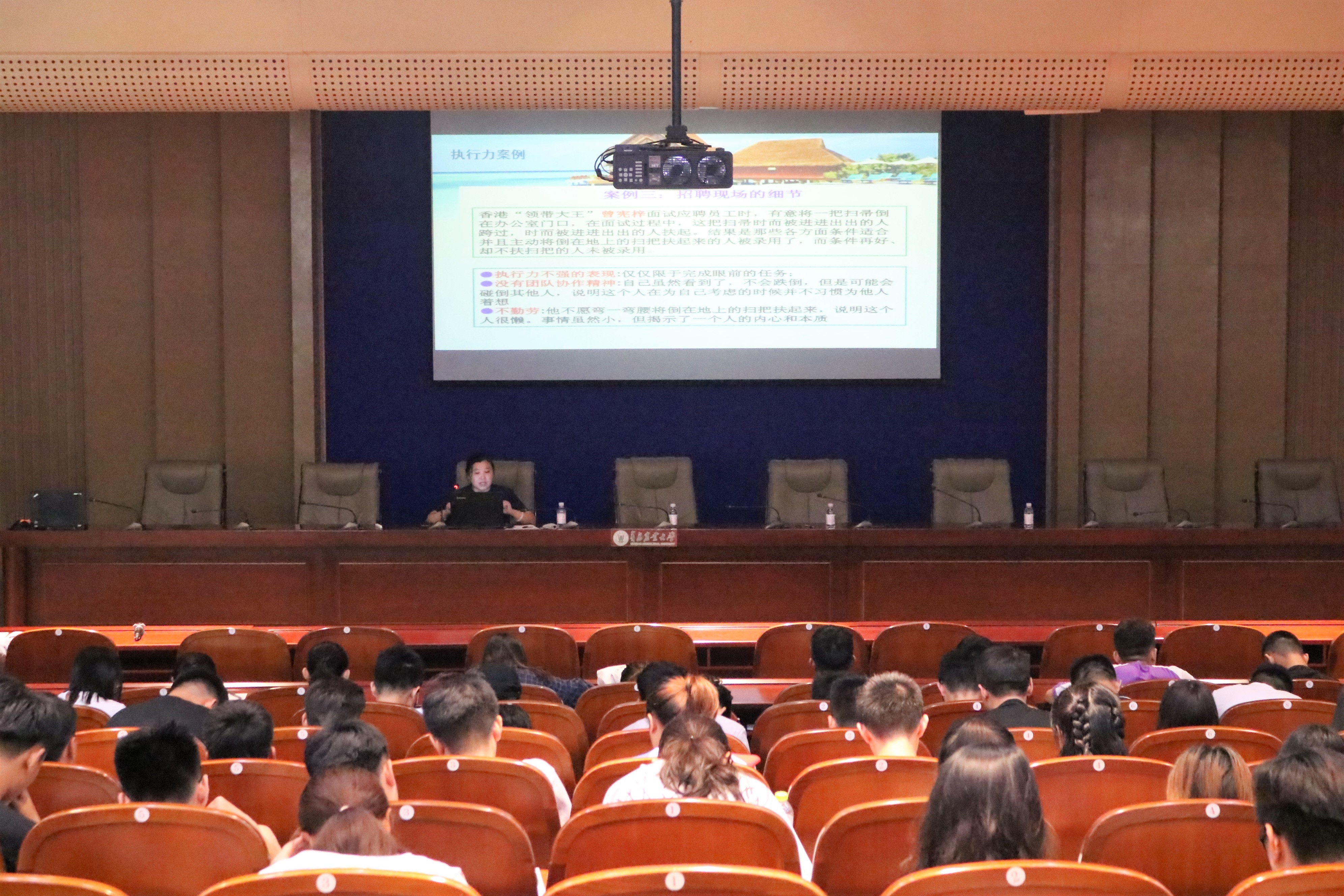 8月26日上午,资源与环境学院于学术会馆开展暑期学生干部培训,林英做“学生干部执行力”的主题报告。林英首先直击执行力的概念和内涵,用真实案例的剖析讲述执行力在军队、企业、学生组织中的重要性,并结合16级学生干部工作现状切实提出以下三点建议:一是优化战略流程,提高决策层的执行力;二是完善执行流程,用正确的方法执行;三是优化人员流程,用正确的人做正确的事。“一丝不苟做好自己该做的,精益求精做好自己能做的,千方百计做好自己想做的”,这是林英对每位学生干部提出的殷切期望。