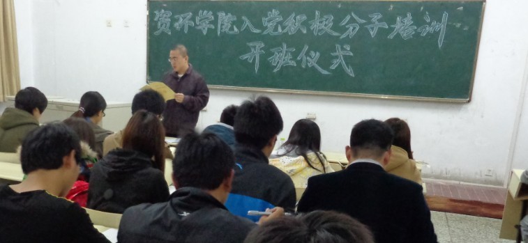 为了帮助入党积极分子进一步掌握有关党建知识,提高综合素质,根据《中国共产党发展党员的工作细则》的有关要求,10月28日,晚上8点40,青岛农业大学资源与环境学院在教学区C102举行入 党积极分子开班仪式,辅导员秦鹏、徐良和11、12级入党积极分子们参加了本次开班仪式。