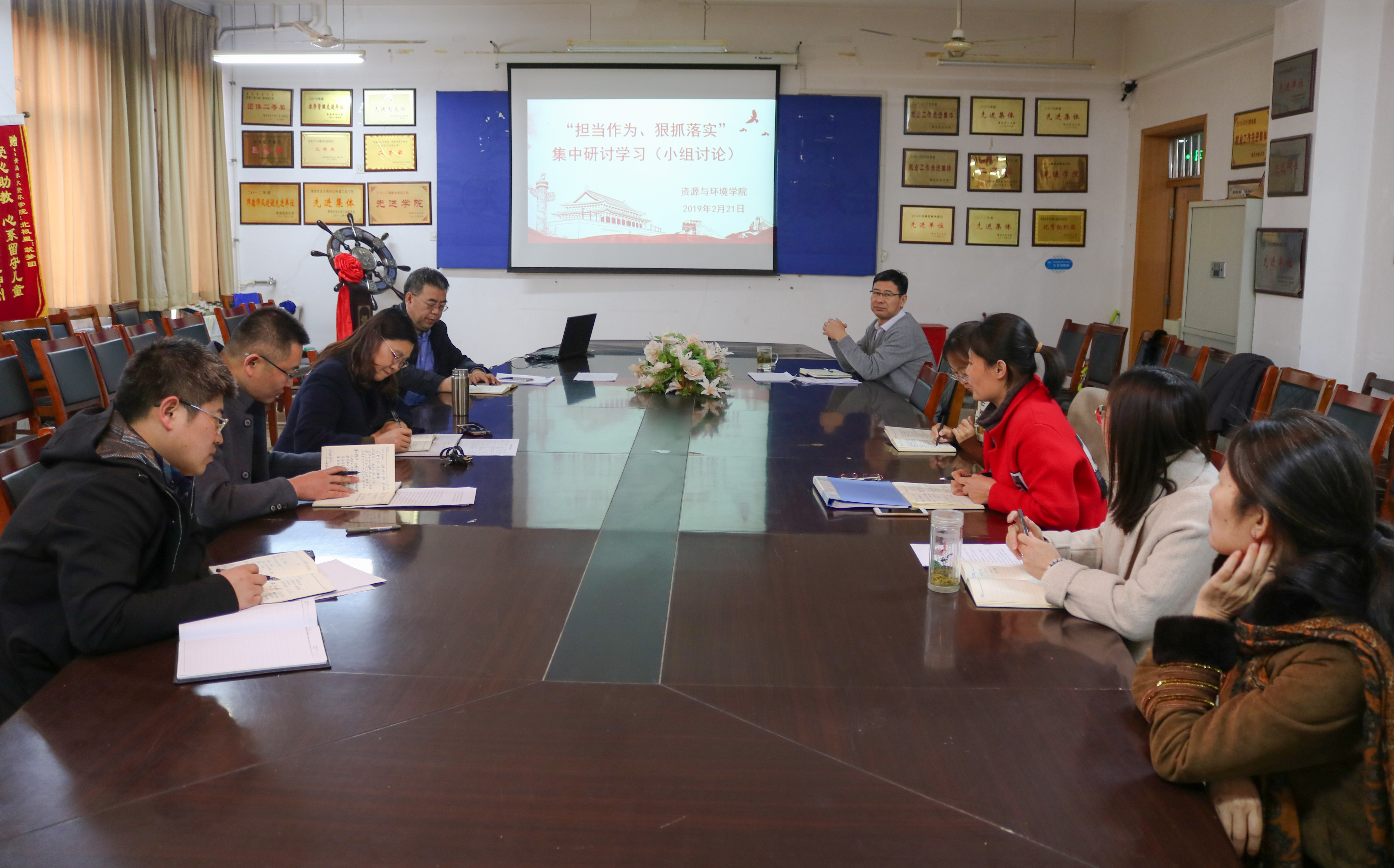 根据青农大办字〔2019〕6号文件精神和学校统一部署,资源与环境学院于2月21日至22日开展了“担当作为、狠抓落实”工作动员大会和专题教育学习活动。本次学习活动形式多样,内容丰富,先后组织了3次集体领学,2次小组讨论,1次集中分享。
