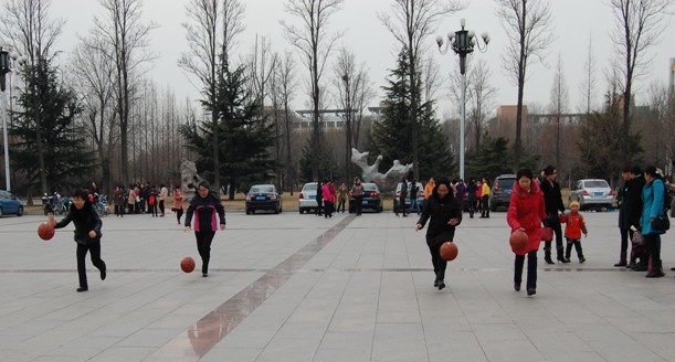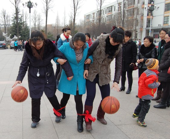 为了庆祝“三八”国际妇女节,响应我校教职工全民健身运动新热潮,展示女教职工积极向上的精神风貌。2014年3月7日下午,资环学院的女教工在主楼广场前开展了丰富多彩的趣味活动。活动包括:抱球跑,踢毽子、绑腿跑,跳绳等。女教师们积极参与活动,欢声笑语不断。