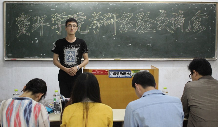 为了进一步帮助11级学生明确考研目标,了解更多考研信息,掌握相关考研技巧, 5月24号,资源与环境学院在教学区A101、A102,举办了“资环学院考研经验交流会”,本次经验交流会由学术部组织,主要针对环境科学、环境工程、农业资源与环境、生态工程四个专业的考研问题,交流会诚邀10届以优异成绩考入复旦大学、南开大学、大连理工大学、中国农科院等高等学府的赵镕、魏浩、邵运贤等学长和王琪雪、盖龙霜等学姐。