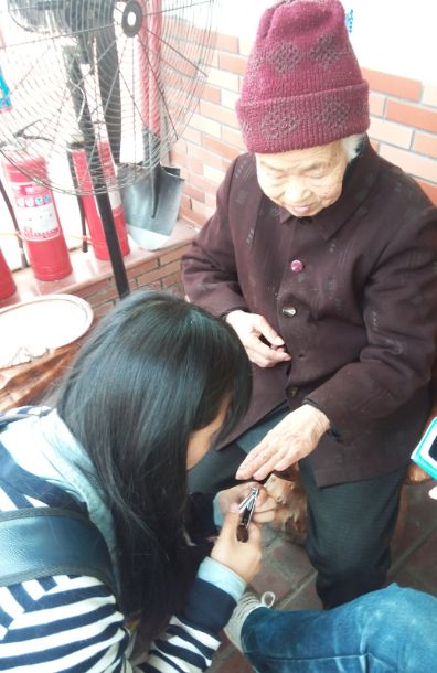 志愿者们在社团联合会负责人的带领下来到城阳区“夕阳红敬老院”“在向敬老院的工作人员了解了有关情况后,负责人给每位志愿者分配了任务。陪老人们聊天、为老人捶背、剪指甲、唱温暖人心的歌曲,一首首歌曲和着欢声笑语响彻整个敬老院,每个人心中都洋溢着丝丝温暖。老人们还讲了好多他们那个年代的故事,忆苦思甜,志愿者们获益匪浅。