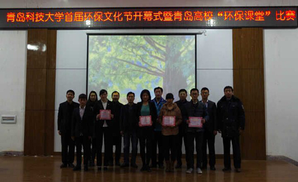 12月14日,青岛科技大学首届环保文化节开幕式暨青岛市高校环保课堂比赛在青岛科技大学四方校区举行。青岛市环保局市北分局局长李荣、宣教科工程师刘波、宣教科工程师纪向民、洛阳路街道办事处洛阳路街道武装部长吴、环境学院党总支副书记兼副院长韩海清、分团委书记贾可好等领导出席比赛。参加本次比赛的有青岛科技大学、中国海洋大学、青岛农业大学等四所高校。在“环保课堂”宣讲比赛中青农资环代表队荣获亚军。