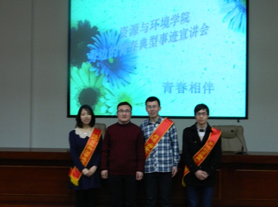 3月24日晚,资源与环境学院在学术会馆第二报告厅进行了“身边的典型事迹宣讲会”。三农学会代表徐玉超、电子商务专业实践团队代表韩雪、创业先锋王骥鹏应邀参加宣讲,学院团委委员、2012级全体学生参加会议,会议由学院分团委书记李永青主持。
