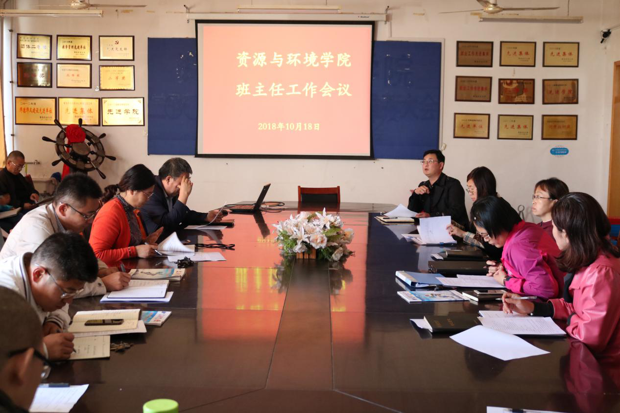 10月18日,青岛农业大学资源与环境学院在化学楼召开新学期班主任工作会议,会议由学院党委副书记、学工办主任林英主持,各班班主任与会。