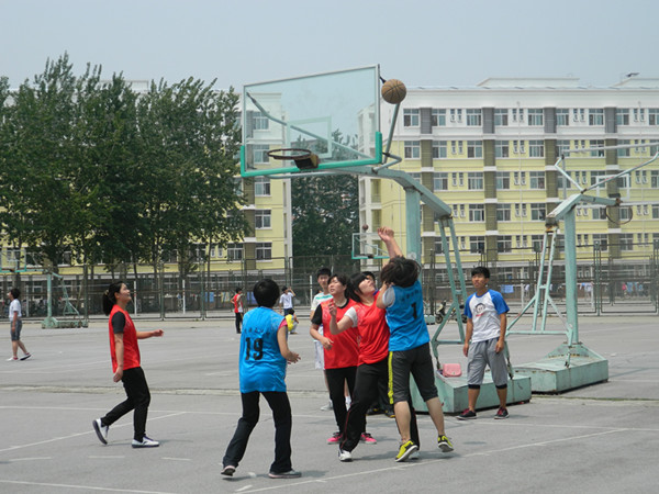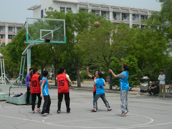 5月19日中午,在学校东苑篮球场上,身着蓝色球服的资环队员们与身着红色球服的经管队员展开了激烈的八强淘汰赛。比赛双方个三名队员,比赛的激烈程度丝毫不逊色于男篮。
