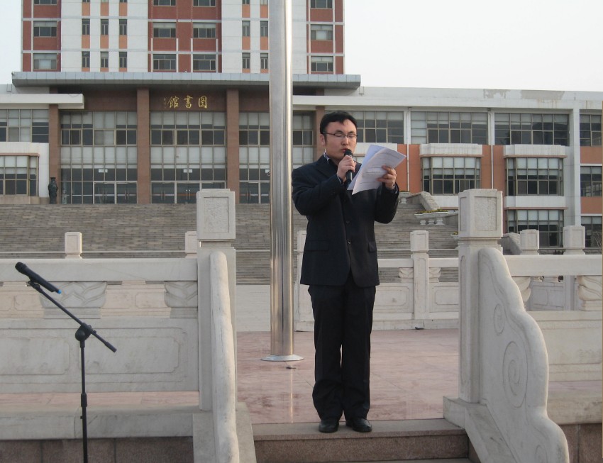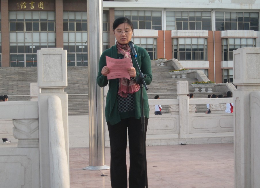 院学生会主席仲昭华代表全体学生干部向全院学生发出了“从点滴做起,共建节约型校园”的倡议。全院学生在国旗下高举右拳,庄严宣誓:“从我做起,从点滴做起,从身边小事做起;节约一滴水,节约一粒粮,节约一张纸,节约一度电,减少使用一次性用品;勤以修身,俭以养德,践行节约,为建设资源节约型、环境友好型社会,为实现中华民族伟大复兴的‘中国梦’贡献力量。”