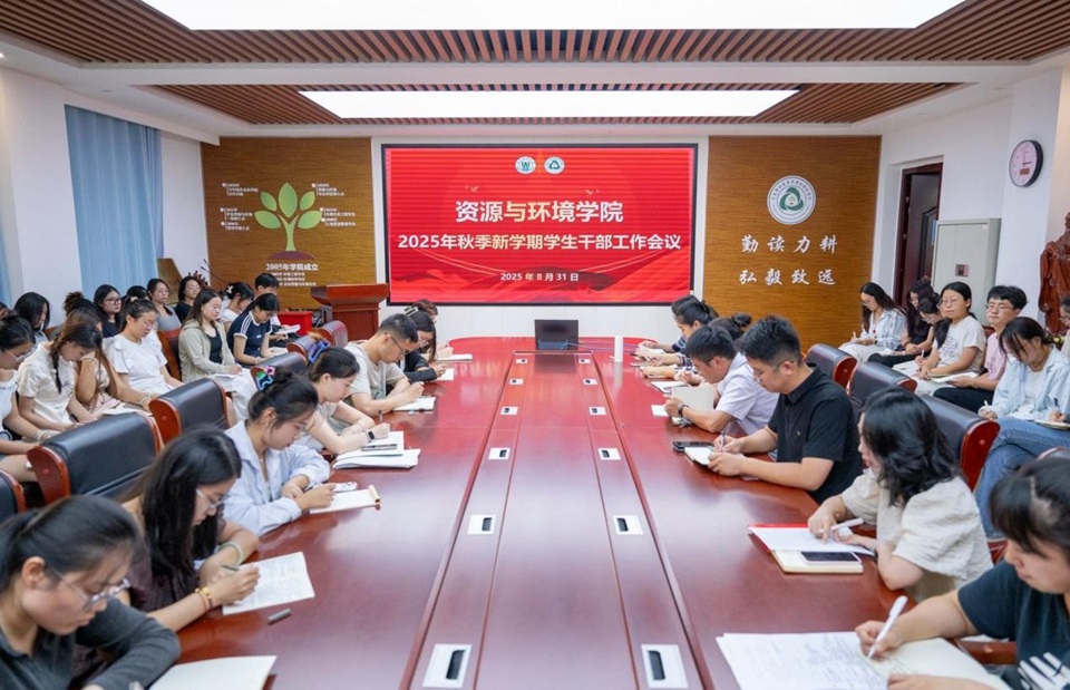 为强化学生干部责任意识与工作能力,提升学生工作效能,8月31日下午,资源与环境学院在化学楼423召开2025年秋季新学期学生干部工作会议。学院党委副书记、副院长王甜甜出席会议,全体辅导员、各班班长、团支部书记及学生会主要学生干部参会。会议由学院团委书记林鑫主持。