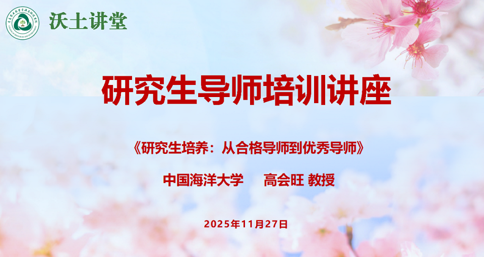 为切实提升研究生导师队伍专业素养与指导能力,推动学院研究生培养工作高质量发展,11月27日,资源与环境学院在化学楼423会议室举办“沃土讲堂”——研究生导师培训讲座。本期“沃土讲堂” 邀请了中国海洋大学崇本学院院长高会旺教授作交流分享。会议由周功克院长主持,学院全体研究生导师参加。