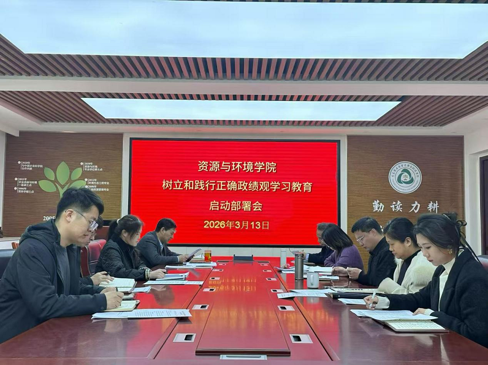 3月13日,资源与环境学院在化学楼423会议室召开树立和践行正确政绩观学习教育启动部署会,学院党委书记史越清主持会议并就学院树立和践行正确政绩观学习教育工作作出全面部署,学院党委班子成员、各党支部书记参会。
