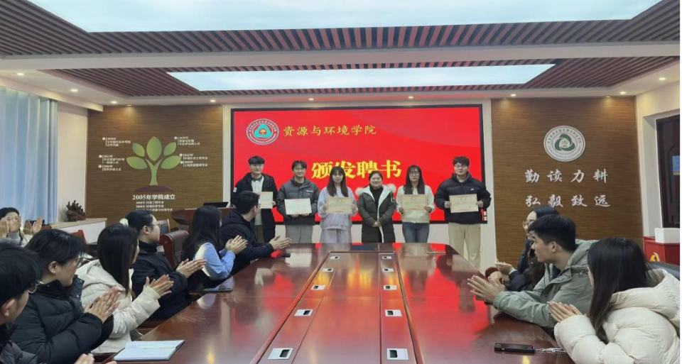 林鑫充分肯定了研究生会学生干部一年来的辛勤付出和积极贡献,并为新一届研究生会成员颁发聘书,勉励大家在服务同学、助力学院发展中继续发挥骨干作用。研究生辅导员孟新翔在致辞中回顾了本年度研究生工作在思想引领、组织建设、学术交流、实践服务等方面取得的扎实成效,对同学们展现出的责任意识与青春担当给予高度评价。他鼓励大家在新的一年里继续保持昂扬向上的精神状态,凝心聚力、携手同行,在科研深耕与服务奉献中不断成长,共同书写资环研究生更加精彩的新篇章。