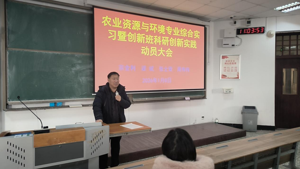 为切实做好2025-2026学年第二学期农业资源与环境专业学生综合实习准备工作,1月8日上午,资源与环境学院召开2023级农业资源与环境专业综合实习暨创新班科研创新实践动员大会。学院院长助理宗全利、农业资源与环境系副主任周伟伟、2023级农资环专业全体本科生参会。会议由农业资源与环境系主任张士荣主持。