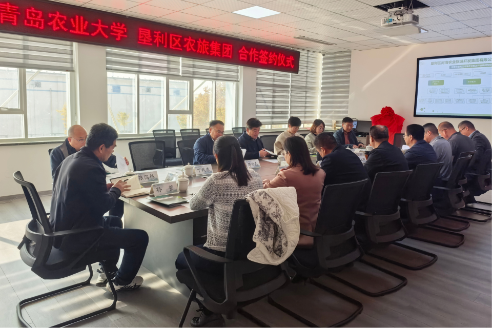 会上,田义轲与垦利农旅集团签订《青岛农业大学东营市垦利区河海农业旅游开发集团有限公司合作协议》,周功克与垦利农旅集团签订《技术服务合同》,双方共同为“青岛农业大学产学研及教学实习基地”揭牌,标志着校企合作迈出实质性步伐。