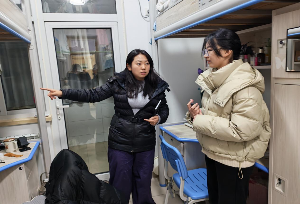 王甜甜指出,宿舍是学生集体生活与学习的重要场所,宿舍环境直接关系到每位同学的日常生活,影响着班级和学院的整体精神风貌。整洁、和谐的宿舍也有助于营造积极向上的学风,促进学生身心健康。她希望同学们深刻认识宿舍安全与内务整洁的重要性,积极配合各项检查工作,自觉杜绝使用违禁电器、私拉电线等危险行为,共同维护安全、文明、和谐的校园生活环境。