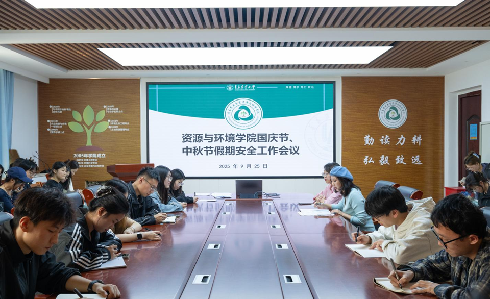 为切实做好国庆节、中秋节假期学生安全教育和管理工作,提高学生的安全防范意识,保障学生安全和身心健康,9月25日,资源与环境学院于化学楼423会议室召开国庆节、中秋节假期安全工作会议。学院党委副书记、副院长王甜甜出席会议,学院2022-2024级全体班长、团支书及学院学生会干部参会,会议由辅导员朱婉宁主持。